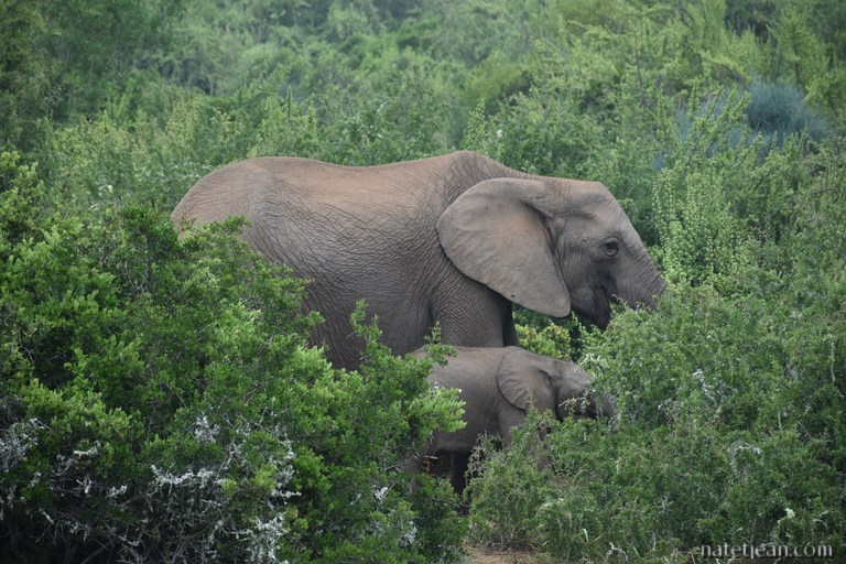 Durant les 2 dernières journées, le soleil a refait son apparition mais il n’est pas assez constant pour que nous profitions des plaisirs du bord de mer c’est pourquoi, nous préférons quitter celui-ci pour revenir un peu dans les terres et surtout pour visiter le parc national Addo Elephant (incl. Wild Card) situé au nord de Port Elisabeth.