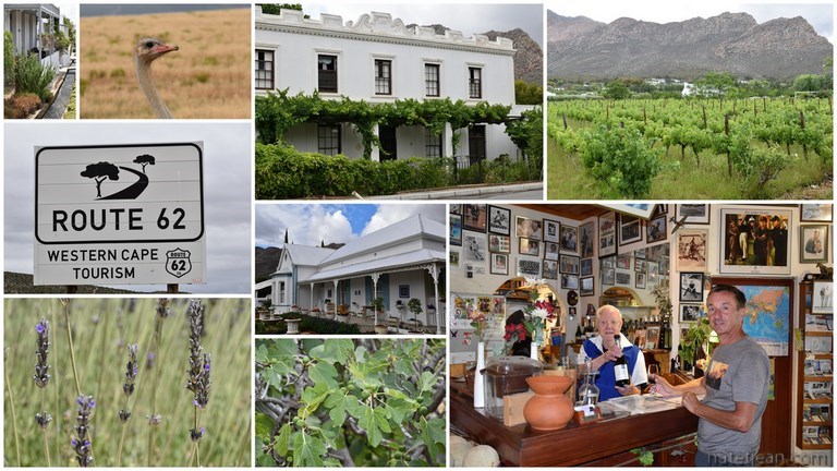 La région est connue pour ses oliviers, sa vigne, sa lavande, ses arbres fruitiers mais aussi pour ses élevages d’autruches. Nous en profitons pour goûter cette viande dans un restaurant d’Oudtshoorn ; c’est tendre et délicieux. Après le repas, nous dormons sur un parking dans le centre-ville ; ici personne ne nous invite à venir chez lui et on le regrette un peu car, entre la musique sortant des voitures en stationnement et les hurlements d’un gardien improvisé, nous ne dormons pas tranquilles. On n’est jamais contents !
