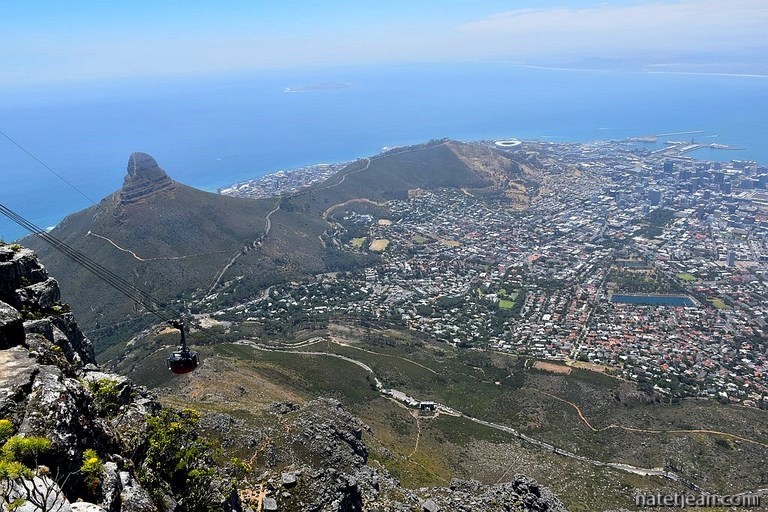 La plus jolie balade de la Table Mountain est sans doute celle qui mène, par un chemin en colimaçon, à la Lion's Head. Éric et Sylvie nous l'avaient conseillée. Elle est beaucoup plus facile que celle qui mène au sommet de la Table et le panorama y est tout aussi beau. En redescendant, on peut rejoindre Signal Hill, un autre sommet panoramique.