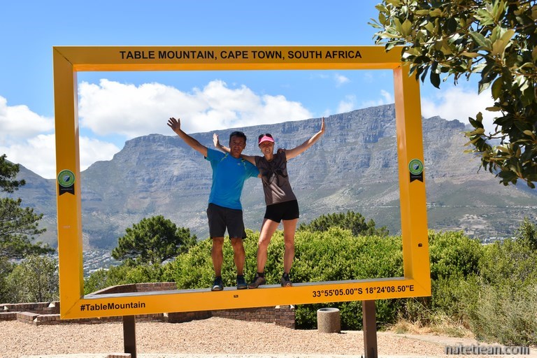 Après le Waterfront, nous partons randonner et bivouaquer dans le parc national de Table Mountain. Garés à proximité du téléphérique qui mène au sommet de la Table Mountain, nous disposons, une fois encore, d'un endroit idéal pour passer quelques jours et pour faire un peu d'activité, notamment pour monter au sommet de la Table à 1086 m d'altitude. La vue sur la ville et sur la péninsule du Cap y est extraordinaire.