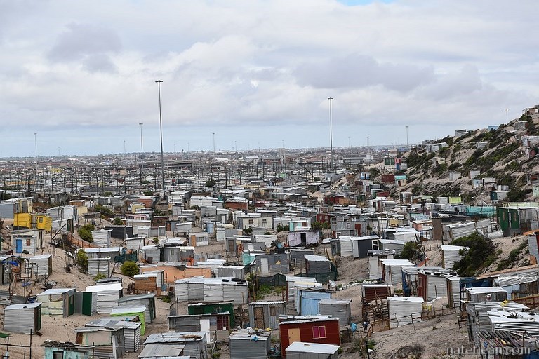 En quittant la péninsule, on longe l'un des plus grands townships d'Afrique du Sud, Khayelitsha, où vivent 1.5 millions d'habitants dans des conditions bien différentes de celles des habitants des stations balnéaires que nous venons de traverser et de celles qui vont suivre, Betty's Bay, Kleinmond et Hermanus.