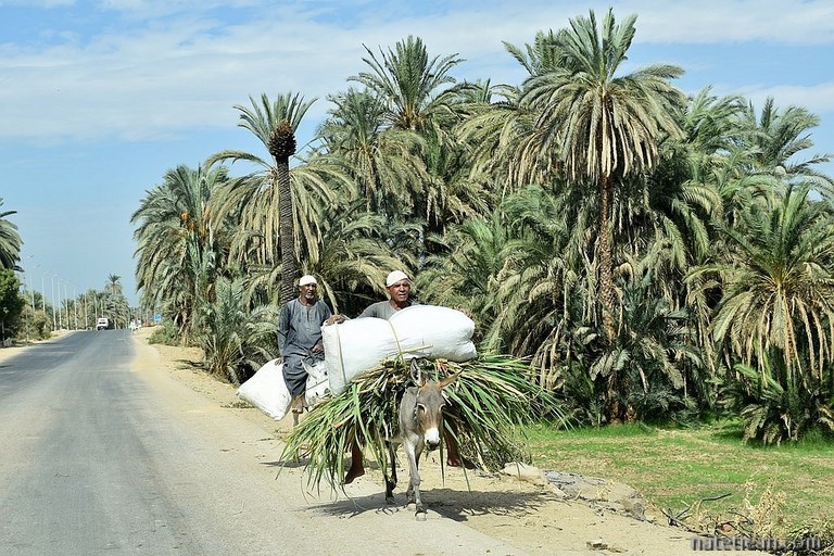 Pour rejoindre les temples de Kom Ombo et celui d'Edfou, nous avons emprunté la route qui longe la rive est du Nil, une route fatigante avec une circulation assez dense et de nombreux dos-d'âne. A partir d'Edfou, nous quittons cette route pour prendre la route du désert qui mène à Louxor, à l'ouest de la vallée du Nil. Cela nous fait faire un détour mais c'est plus rapide.