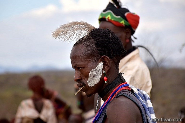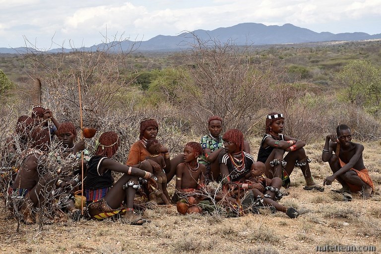 Les Hamer sont un peuple très particulier. Dans leur apparence tout d'abord. Les femmes ont la peau recouverte de beurre et de terre de la tête au pied à la manière des femmes Himba en Namibie. Elles portent, comme ces dernières, des jupes en peau. Lorsque nous les croisons dans leur village ou sur la route, elles ont les seins nus mais recouverts de nombreux colliers alors qu'à Turmi, elles portent le plus souvent un tee-shirt. Les hommes, eux, ont des pagnes très courts et, sur la tête, des coiffes faites de bijoux ou de plumes. Dans leur mode de vie aussi, les Hamer sont très différents. Ils vivent dans une région très chaude et sèche et disposent de très peu d'eau. Ils cultivent donc très peu voir pas du tout. Leur seul bien est leur bétail. Ils ne se nourrissent principalement que de lait et de sang. On se demande comment il est possible de vivre dans des conditions aussi rudimentaires, dans une région où, en plus, sévit la malaria.