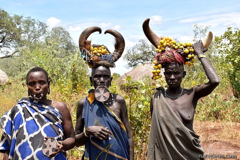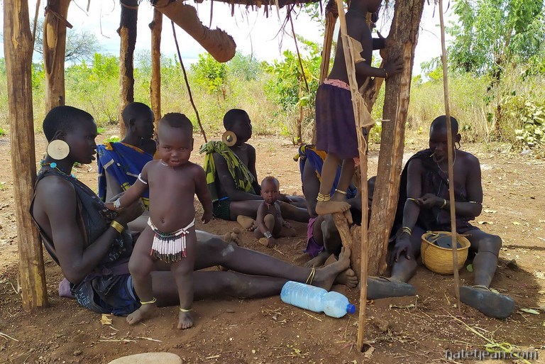 Sur place, nous réservons une visite dans un village mursi, une ethnie vivant à l'ouest de Jinka dans la zone recouvrant les parcs nationaux Mago et Omo. Les Mursi sont, comme les Hamer, un peuple très particulier mais leur mode de vie et leur apparence sont différents. Chez les Mursi, par exemple, les femmes portent des labrets, de petits plateaux de terre, insérés dans leurs lobes et leur lèvre.