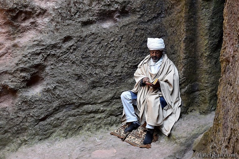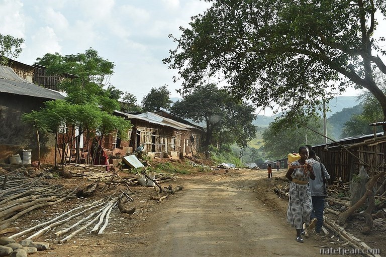 Le jour suivant, nous prenons la route pour Lalibela, la "nouvelle Jérusalem" où sont édifiés des sanctuaires chrétiens datant des XIIème et XIIIème siècles. De Dessié à Weldiya, on continue de suivre la route 1 puis nous nous dirigeons vers l'ouest pendant une cinquantaine de kilomètres en suivant la "Route Chinoise", une route asphaltée complétement défoncée. Arrivés au village de Dilb, à 3200 mètres d'altitude, on bifurque à droite pour prendre une piste sur environ 60 km. La piste, à fort dénivelé, nécessite un véhicule avec une bonne garde au sol afin de franchir les nombreux gués qui, au moment de notre passage, sont heureusement à sec. Il nous faut plus de 4h pour rejoindre Lalibela depuis Weldiya. Arrivés sur place, nous avons la chance de trouver, une fois n'est pas coutume, un joli lodge, le Tukul Village.