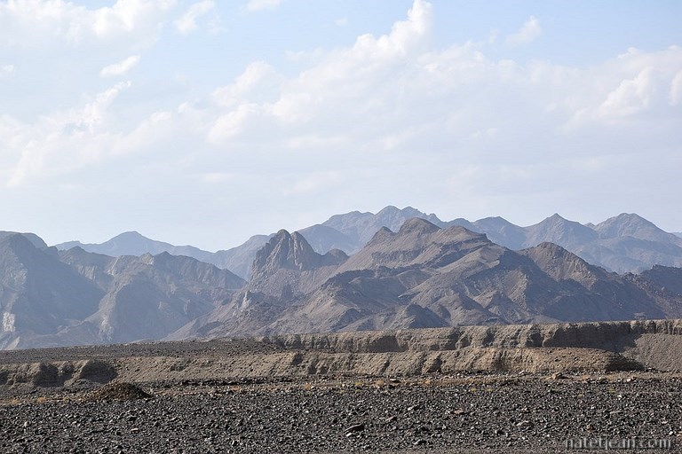 Nous entrons dans le désert du Danakil en milieu d'après-midi après avoir perdu 2400 mètres d'altitude. Les paysages deviennent de plus en plus secs et rocailleux à mesure que nous descendons. La température, quant à elle, monte jusqu'à 43°C et un vent chaud nous sèche la gorge. Sur la route (asphaltée et en parfait état), nous croisons les caravanes de dromadaires transportant du sel et conduites par des Afars. Les Afars, de confession musulmane, appartiennent à une ethnie présente non seulement dans cette partie de l'Ethiopie mais aussi en Erythrée et à Djibouti, 2 pays dont la frontière est très proche ; l'Erythrée étant à une trentaine de kilomètres d'Hamedela, le village où nous installons le camp pour la nuit.