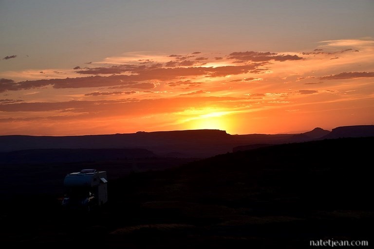 Pourtant, cette piste ne nous dissuade pas d'en prendre une autre, il est vrai en bien meilleur état, afin de rejoindre Roma et d'éviter Maseru. La route est déserte et superbe. Nous décidons de bivouaquer en bordure, sur un point de vue au-dessus d'un barrage. Contrairement à ce qui était prévu, il fait très chaud au Lesotho et même à cette altitude, à presque 2000 mètres. La colline où nous sommes nous permet de bénéficier d'un peu de vent et d'éviter d'avoir trop chaud. D'après les gens que nous avons interrogés, ce temps sec et très chaud n'est pas habituel.