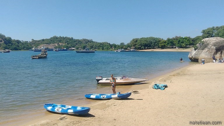 Après 2 jours passés à Cape Maclear et de la musique plein les oreilles, nous retournons à Monkey Bay et séjournons 2 journées au Monkey Bay Beach Lodge. Le lodge situé en bord de lac à l'intérieur d'une base militaire est très tranquille. Si le camping est rudimentaire, le lodge est très bien décoré et donne envie de rester quelques jours. On y loue un canoë pour aller faire du snorkeling sur l'île se trouvant en face. On y voit beaucoup moins de poissons qu'à Cape Maclear mais on revoit un aigle marin et on approche 2 martins-pêcheurs.