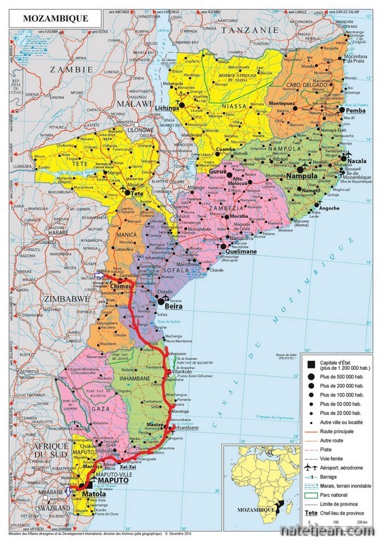 Une route principale, la N1, traverse le pays du sud au nord. Depuis la frontière zimbabwéenne, nous devons suivre la route N6 pendant 150 km pour la rejoindre. Cette dernière est flambant neuve et cela nous permet d'avancer rapidement. Nous avons prévu d'atteindre le bord de mer, à Inhassoro, en 2 jours. Il y a environ 500 km à parcourir et si la route est aussi bonne, cela devrait être plus rapide que prévu même si nous perdons un peu de temps en route, à Chimoio, pour faire quelques courses, retirer de l'argent et acheter une carte sim et si la nuit nous impose de nous arrêter dans un village, Muxungue.