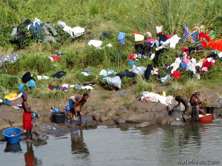 Les femmes lavent le linge tandis que les enfants profitent de la mer et que les vaches se promènent - Morrungulo