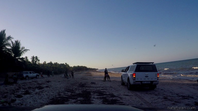Pendant une vingtaine de kilomètres, nous roulons seuls sur la plage immense avant de retrouver les pêcheurs aux abords d'Inhassoro.