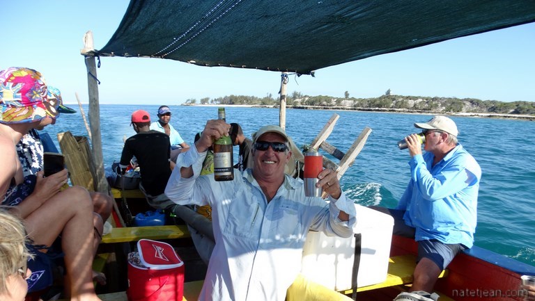 Alors que nous nous faisons bronzer sur la plage (et chopons nos premiers coups de soleil), nous sommes démarchés, par Julio, un local, pour faire une excursion sur l'Île Santa Carolina, dans le parc national de Bazaruto. Cela nous paraît un peu cher pour une journée de snorkeling mais, après discussion et marchandage, nous nous laissons convaincre.