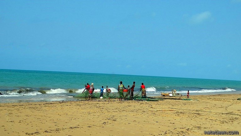 Mais, ce n'est plus du tout l'impression que l'on a le lendemain matin lorsque nous découvrons sa belle plage et la mer turquoise très calme. De plus, la ville est dynamique, le marché et les commerces typiques; c'est une ville intéressante à visiter. Nous nous faisons un peu arnaquer en achetant d'énormes crevettes. Le marchandage n'est pas toujours facile et les vendeurs pas souvent conciliants; on repart souvent sans rien mais là, les crevettes étaient vraiment trop tentantes.