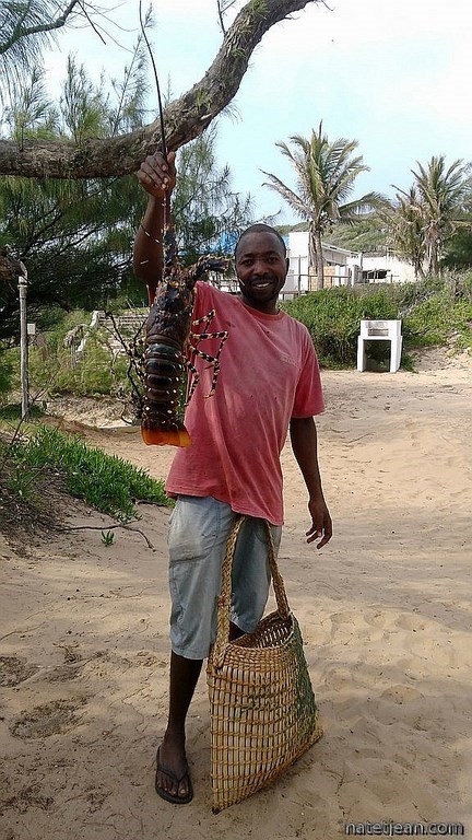 Le restaurant du complexe est un peu plus fréquenté, à la fois par des étrangers et par des Mozambicains. Nous ne résistons pas longtemps avant d'aller y déguster notre première langouste. Ça change du début du voyage, fruits délicieux, poissons frais, fruits de mer et langoustes. L'influence portugaise sur la cuisine est nettement meilleure que celle qu'ont pu avoir les anglais sur les autres pays !