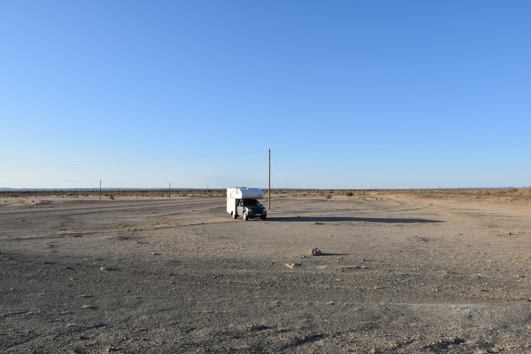 Puis nous bivouaquons non loin de là à quelques centaines de mètres de la piste près d'un point d'eau asséché. Ce soir, la fraicheur arrive un peu plus tôt et le vent nous permet de nous passer de ventilo pendant la nuit.
