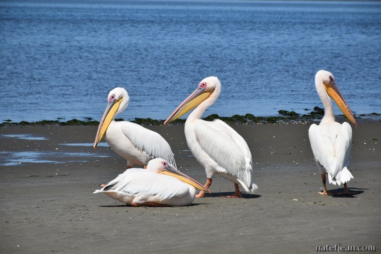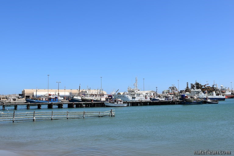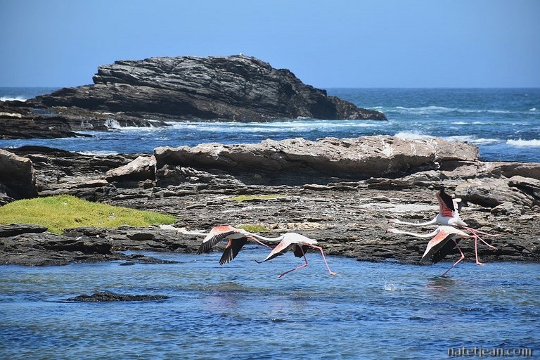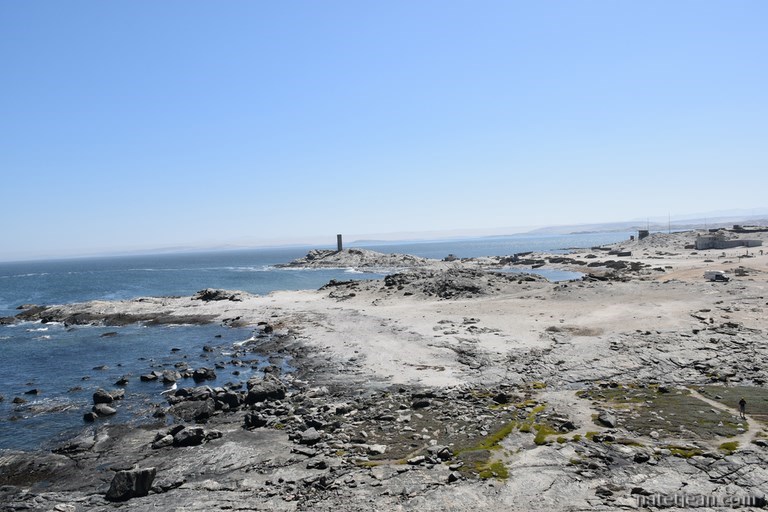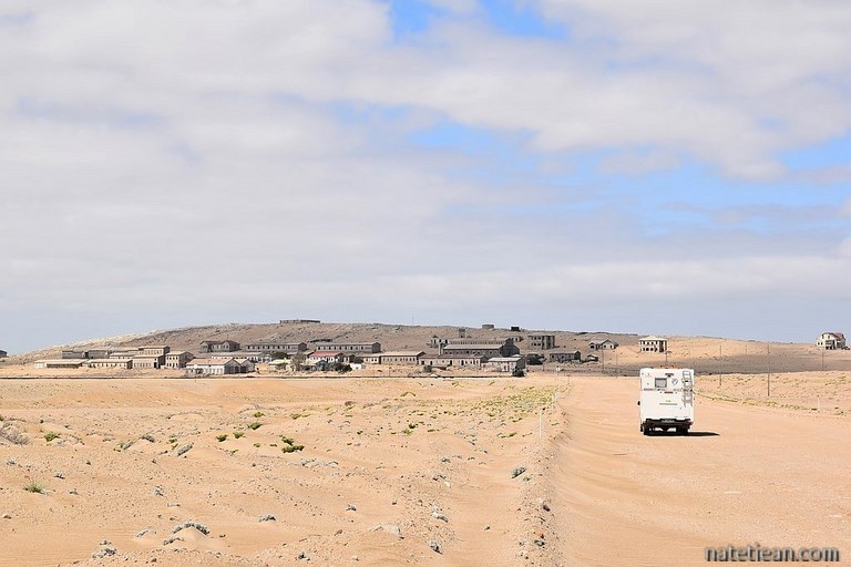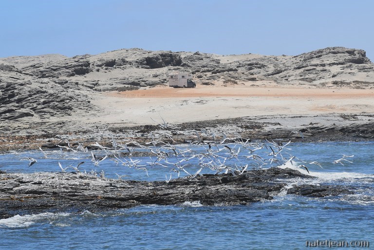Lüderitz, sa voisine, n'a pas subi le même sort. C'est une ville plutôt active qui gère l'activité minière et l'industrie de la pêche. Avant d'en faire le tour, nous visitons ses environs dans la partie autorisée du Sperrgebiet. Nous nous arrêtons pour bivouaquer sur une belle plage dans la baie de Sturmvogelbucht avant de rejoindre Grosse Bucht un peu plus au sud. Entre ces 2 points, nous apercevons sur les îles alentours des phoques, des manchots ainsi que des flamands roses. L'endroit est très sauvage et les plages sont belles mais, la température de l'eau n'incite pas à se baigner. C'est d'avantage fait pour les phoques et les manchots que pour nous.