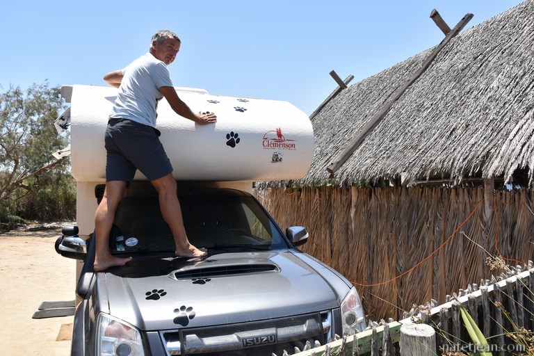 Le matin, au moment de démarrer le véhicule, mauvaise surprise; la batterie est à plat. Depuis quelques temps, nous avons des soucis pour démarrer. La première fois que ce problème est apparu, c'était au Zimbabwé. Puis cela s'est reproduit de temps en temps et depuis quelques semaines, tous les jours, chaque matin. Le camping-car démarre puis après quelques secondes, il s'arrête. Au bout de plusieurs tentatives de redémarrage, il finit par partir. Quand il est chaud, nous n'avons jamais de problème. Nous avons fait contrôler le véhicule en Afrique du Sud chez Isuzu et rien d'anormal n'a été détecté sur le véhicule lui-même ce qui a confirmé le diagnostic de Jean qui pense à un problème de fuite sur le filtre à gasoil Racor, un filtre additionnel que nous avons fait ajouter avant de partir. Nous avons tenté de faire réparer le filtre par 2 fois en Afrique du Sud mais, il fuit toujours. Ce matin, le véhicule a démarré comme d'habitude puis s'est arrêté; la batterie n'a semble-t-il pas résisté aux tentatives suivantes de redémarrage.