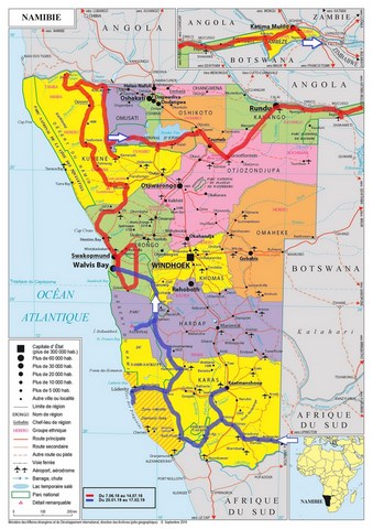 Notre séjour en Afrique a débuté dans le port namibien de Walvis Bay en juin dernier et après 7 mois 1/2 de voyage, nous sommes maintenant de retour en Namibie. Lorsque nous sommes arrivés, c'était l'hiver austral et la saison idéale pour visiter le pays. Aujourd'hui, nous sommes en plein été et c'est peut-être le pire moment pour être là; spécialement pour visiter le sud du pays. Il fait maintenant très chaud, plus de 40°C le jour et la nuit, les températures ont du mal à redescendre. Jusqu'à présent, nous étions toujours dans les meilleures périodes pour voyager. Ces prochains mois, il faudra sans doute subir la chaleur puis la pluie. Tout ceci était prévu mais il était impossible de faire un itinéraire différent en tenant compte à la fois des points d'intérêts, des routes, du climat et de la durée des visas. Nous nous attendons donc à vivre des moments assez difficiles.