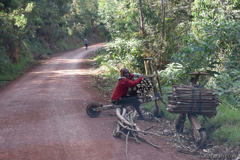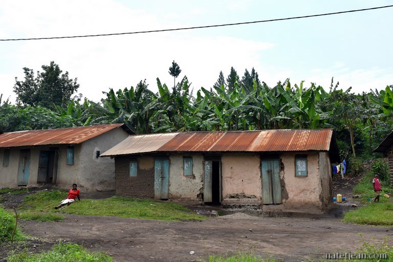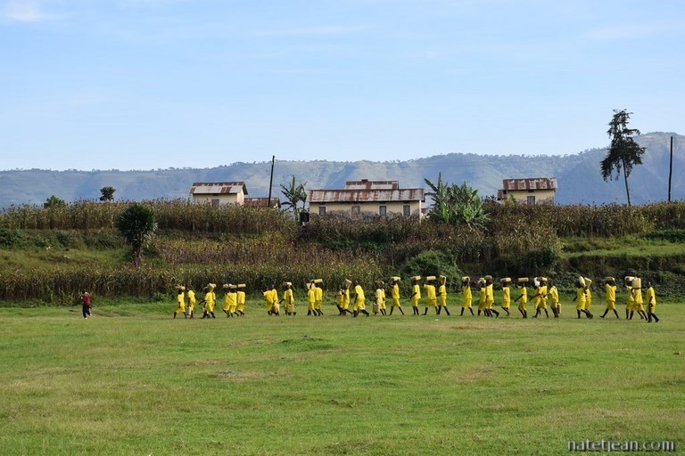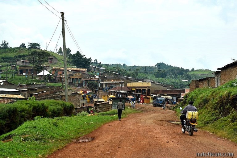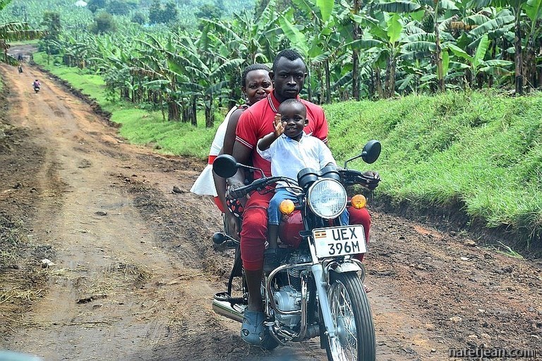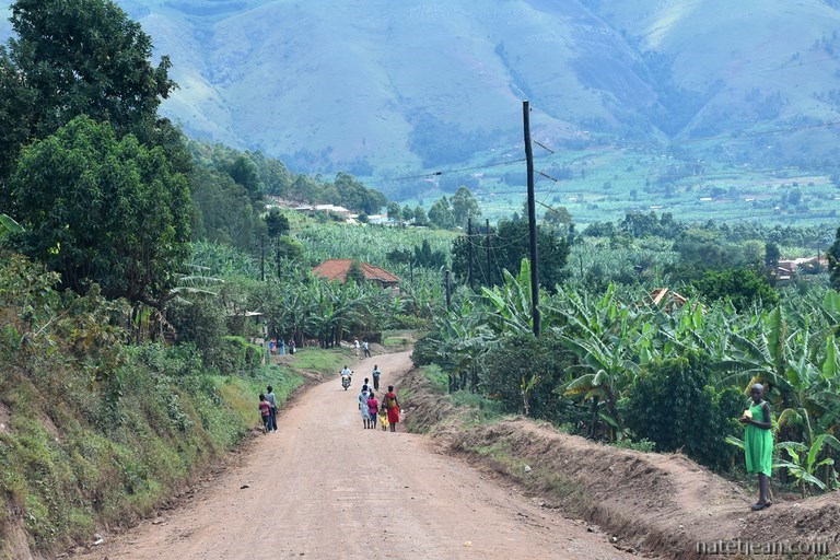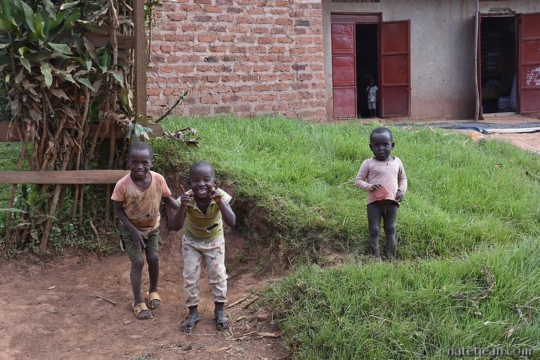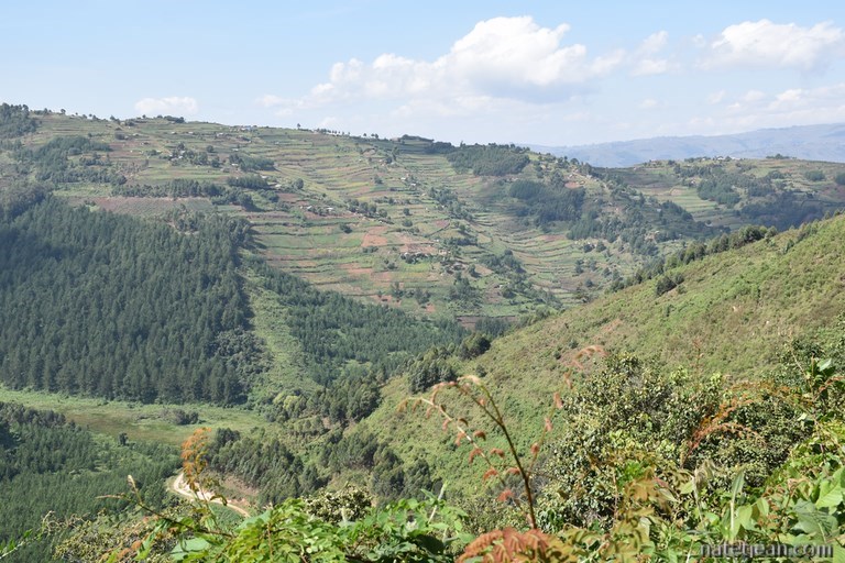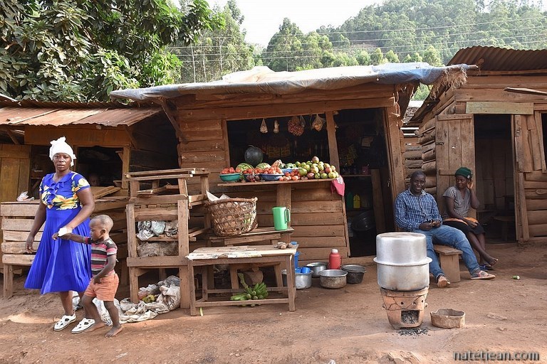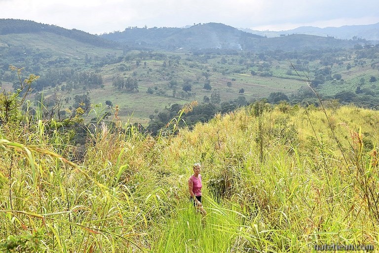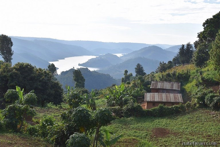 La première ville d'importance que nous traversons est Kisoro, base touristique pour aller traquer les gorilles des montagnes. Bien que les tarifs pour aller voir ces primates soient beaucoup moins coûteux en Ouganda qu'au Rwanda (600$ contre 1'500$), nous n'avons pas prévu d'y aller. Nous ne restons donc à Kisoro que le temps d'acheter une carte sim, un forfait Internet et de retirer des shillings ; la ville est vraiment très moche. Nous prenons ensuite la route en direction de Kabale et nous arrêtons pour bivouaquer en fin d'après-midi à 2450 mètres d'altitude en bordure de la réserve forestière d'Echya au-dessus du lac Bunyoni. Nous sommes surpris par la pauvreté des gens qui habitent dans cette montagne, par la vétusté des habitations. Dans cette région, vit le peuple Batwa (ou pygmée) l'un des plus pauvres et des plus discriminés d'Ouganda. Il est possible que ce soit eux que nous ayons croisés aujourd'hui.