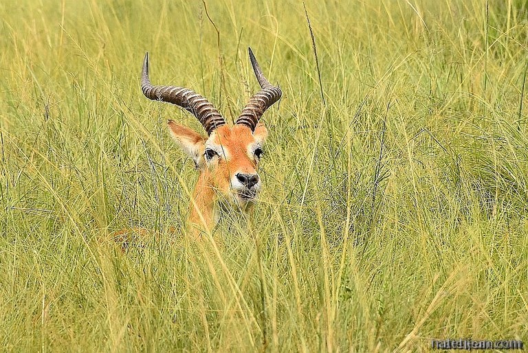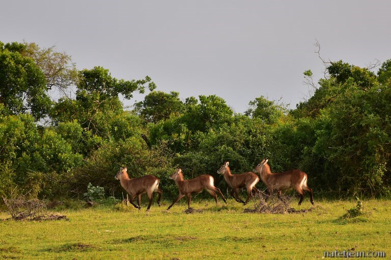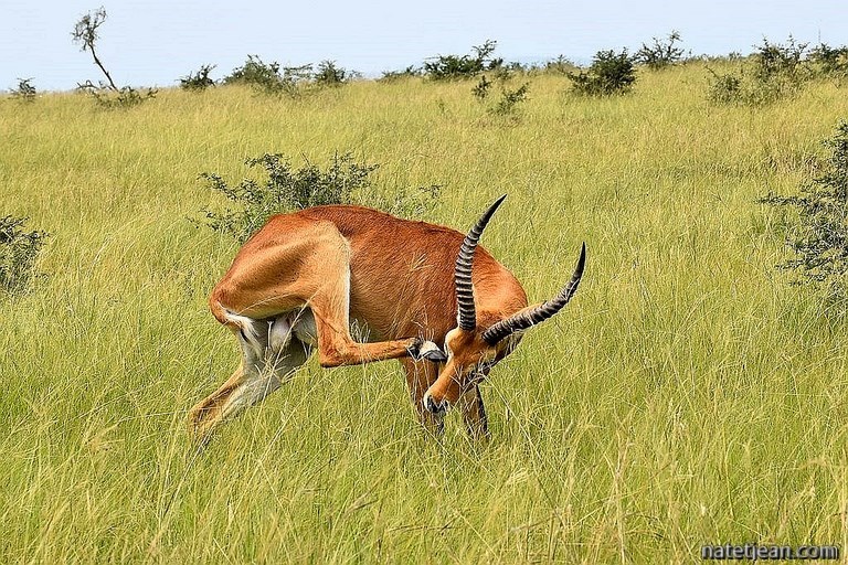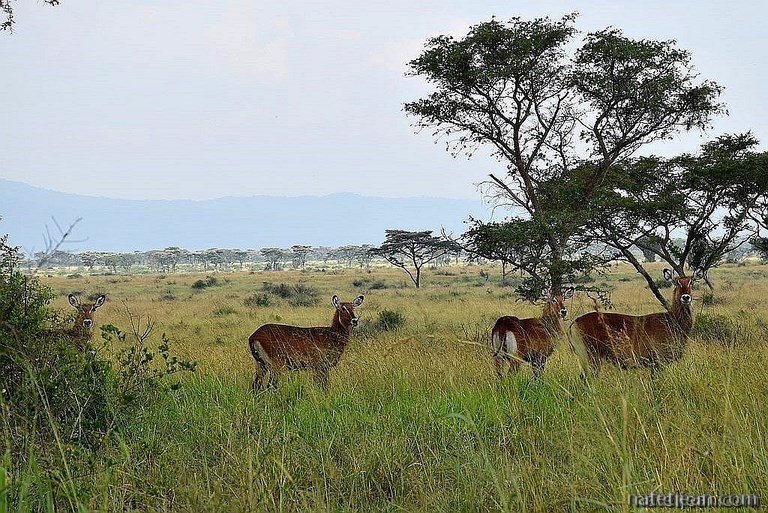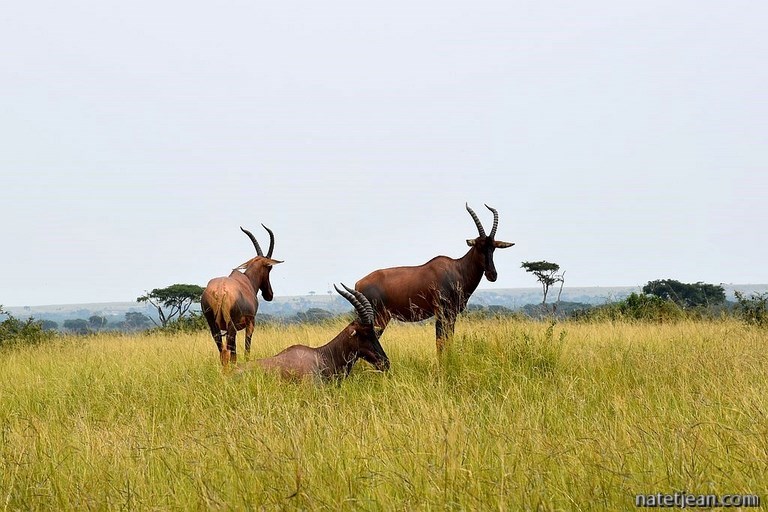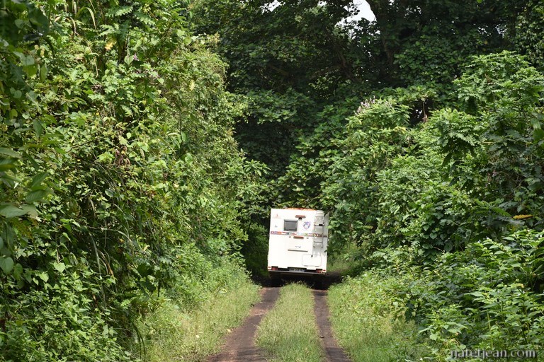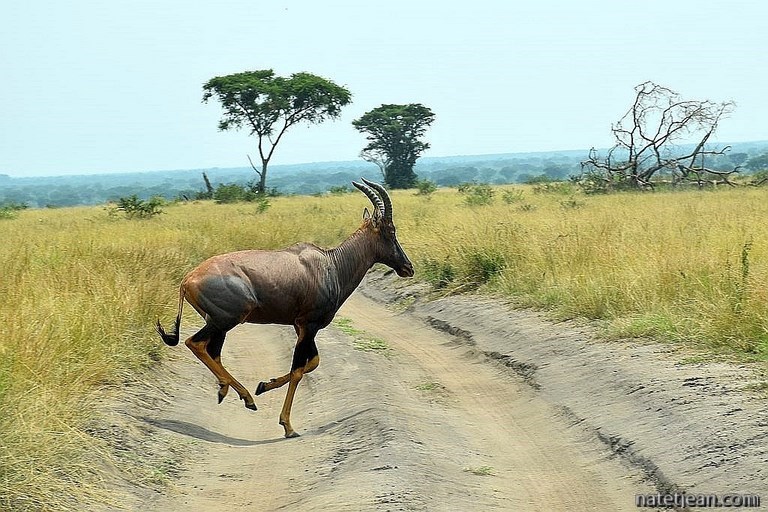 A midi, nous entrons dans la réserve d'Ishasha à la recherche des lions arboricoles, des lions qui grimpent dans les arbres, particularité rare chez ces fauves. Alors que nous avions vu une multitude d'animaux la veille, nous sommes surpris d'en voir si peu ici. Il y a bien quelques antilopes, des topis mais pas grand-chose d'autre. De plus, la piste qui sillonne le parc est un cauchemar ; elle est étroite et en très mauvais état. Difficile de se concentrer sur les animaux et les paysages, on ne pense qu'à regarder la route.