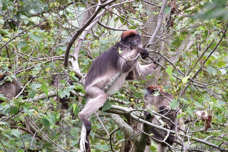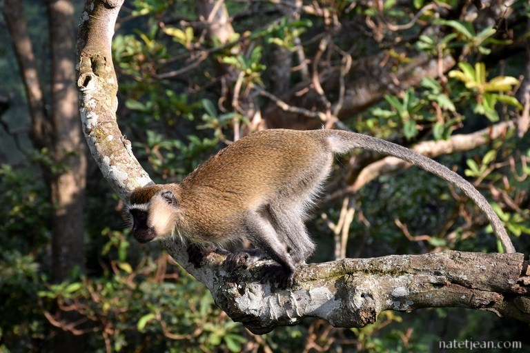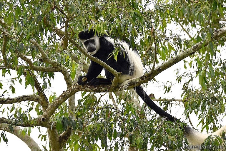 En balade au bord du lac Nkuruba et dans le camp même, nous retrouvons les mêmes singes qu'à Kasenda, colobes et vervets, toujours aussi nombreux. En Ouganda, nous avons maintes fois aperçu des colobes noirs et blancs en pleine nature et dire qu'au Rwanda, au parc national Nyungwe, il fallait prendre un guide pour les voir et payer 70$ par personne...