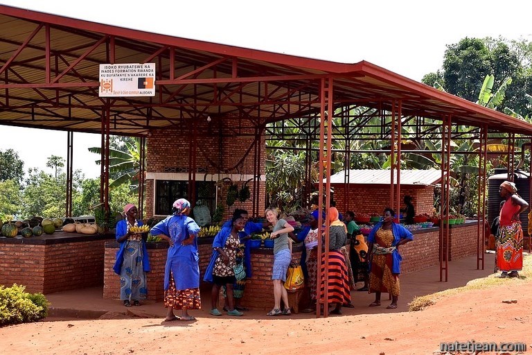 Nous partons ensuite au bord du lac Kivu, à Kagano, dans le district de Nyamasheke. Le lac, long de 89 km, fait frontière entre le Rwanda et la République Démocratique du Congo. Situé à 1460 m d'altitude, la route qui surplombe le lac est elle aussi haute en altitude et offre des points-de-vue époustouflants. A Kagano, nous choisissons de nous arrêter au Ishara Beach Motel qui dispose d'une petite plage de sable. Nous y restons le temps du week-end. Quelques Rwandais viennent également profiter de ce bel endroit pour se baigner et pour passer le samedi ou le dimanche en famille et quelques mariés pour se faire prendre en photo. Dans l'après-midi, nous partons faire quelques courses au village de Nyamashake à pied. Nous avons déjà remarqué qu'en Afrique les gens marchaient tout le temps ; les routes servent aux véhicules mais surtout aux gens pour se déplacer à pied et, au Rwanda comme ailleurs, les gens marchent car peu ont des voitures et peu peuvent payer un bus ou une moto-taxi ou même une vélo-taxi lors de leurs déplacements quotidiens. Pour une fois, nous les accompagnons pendant plusieurs kilomètres. Ils sont surpris de nous voir marcher et se demandent bien ce que nous faisons là. Nous aussi d'ailleurs puisqu'à Nyamashake il n'y a rien à acheter. En revenant, puisqu'on n'a pas trouvé de quoi manger, on déjeune au restaurant de l'hôtel, brochette de chèvre et de poisson, un régal qui ne coûte presque rien.