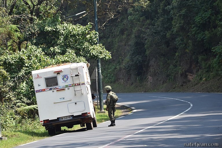 C'est un camion qui, arrivant en face de nous en faisant des appels de phares, nous fait comprendre que nous venons de passer la frontière de Rusumo ; nous roulions sur la voie de gauche depuis le début de ce voyage alors que, désormais au Rwanda, nous devrons rouler à droite. Un héritage de la Belgique, colonisateur du pays durant la première moitié du XXème siècle. Autre héritage belge, les douaniers nous accueillent en français même si la langue officielle du pays est désormais le kinyarwanda.