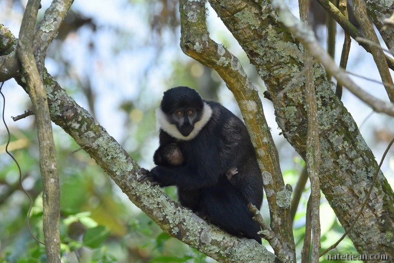 Le parc Nyungwe est le paradis des singes, cercopithèques de l'Hoest, colobes, babouins, singes dorés et chimpanzés entre autre. Si l'entrée du parc est gratuite, la traque pour voir les colobes, singes dorés et chimpanzés est payante (entre 70 et 90$/pers) ; nous sommes donc très heureux de voir, sur notre chemin, 2 chimpanzés par nous-mêmes. Malheureusement, pris par surprise, nous n'avons pas eu le temps de prendre de belles photos.