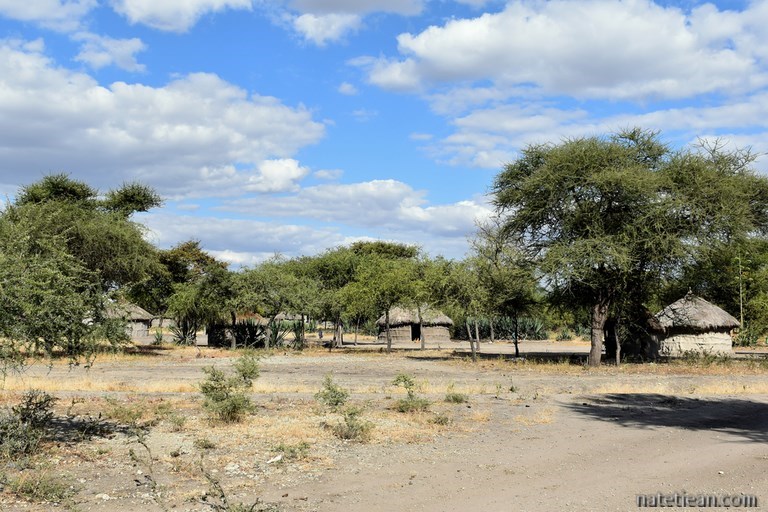 Un peu plus tard, alors que nous sommes à l'entrée du parc national Tarangire, nous nous arrêtons dans un petit village massaï pour y passer la nuit. Nous nous adressons aux habitants pour leur demander la permission de rester mais, comme personne ne parle anglais et que nous ne parlons pas la langue du pays, le swahili, nous ne nous comprenons pas. Une femme nous fait visiter sa case pensant que nous lui demandons l'hospitalité. Elle est très déçue lorsqu'elle s'aperçoit que nous dormirons dans notre camping-car. Arrive ensuite un villageois qui connait 3 ou 4 mots d'anglais et qui insiste pour que nous nous garions à côté de sa case, ce que nous faisons. Il installe 3 petits tabourets et nous finissons l'après-midi assis ensemble tout en parlant sans se comprendre. A la nuit tombée, un habitant, Isaac, parlant anglais vient nous trouver et nous confirme que nous pouvons rester. Il nous demande une petite somme d'argent pour la personne qui nous a accueillis puis il nous emmène chez lui pour nous présenter sa femme Ana et visiter sa case.