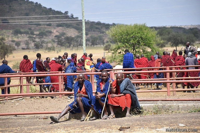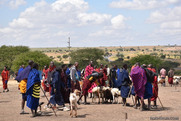 Le lendemain, ayant fait remplir nos 2 bouteilles, nous partons vers le parc national Tarangire que nous voulons visiter le lendemain. En route, nous nous arrêtons sur un marché où les habitants des villages alentour, des Massaïs, viennent acheter ou vendre du grain, des objets usuels et du bétail. C'est l'occasion de rencontrer ce peuple emblématique de la Tanzanie dans une atmosphère authentique.